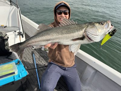 駿河湾はシケ休み、ここ数年呑みにも行かなければ格闘技も筋トレにも行かず博打も一切やらず時間が空けば常に釣り…釣り釣り…仕事以外でこんなに釣りばっかりしてるのは30年以上ぶりぐらいかな笑、自分でもこの釣りスイッチが何なのかわからないけどただただ楽しい♡そして一通り釣って来た色んな魚たちを素人だった頃では無く今の自分目線で挑む事が船、オカッパリ関係無く新しい発見があり仕事に生きてる。という理由を付けて今回も東京湾シーバス行って来ました笑。駿河湾シケ確定が決まって急遽だったので仲間も集まらず、最近ビッグベイトシーバスにドハラマリしてる焼津岳栄丸と2人羽田のfreaksさんにお邪魔して来ました