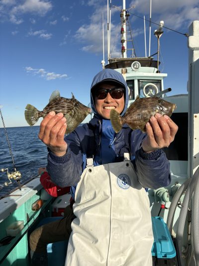 昨日は丁度シケ予報だったので先日一緒にシロアマダイを焼津に釣りに行った真鶴のしーたかこと緑龍丸たかしの船へ常連のお客さんと最近休みの日に一緒に釣りに行く焼津岳栄丸と5年ぶりぐらいのカワハギ釣りに行って来ました。朝沼津を出る時には風はブンブン吹いて居ましたが山を超えて風裏の熱海に入ったら海はベタ凪岳栄丸と所変われば海も変わるもんだなーっと話をしながら真鶴岩港に到着。船に乗り込み出船、港出て2分のポイントから釣り開始。良型がパラっと当たり全員GETでしたがそこからが長い沈黙、期待をされてくれてドン底に落とす海あるあるにハマり込み…船長とタカシも一生懸命ポイント移動を繰り返し這いあがろうとしてくれましたがきっと今日はそんな日…たまに単発で拾う場面もあり船長も普段やらない場所も探索しつつ時間も大延長で頑張ってくれました。そんな時の船長心理は俺には痛い程よくわかる涙そんな船長を助ける為には俺が1匹でも多くカワハギを釣って同船してるお客さんたちの気持ちを切らせない事が任務なのですが、う〜〜ん笑そんなこんなで皆んなでワイワイ釣れても釣れなくても楽しい時間をすごす事が出来ました。皆さんお疲れ様でした