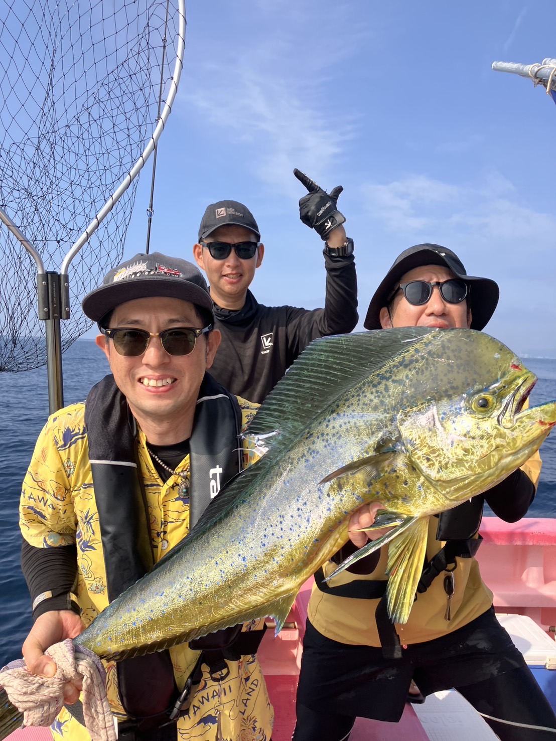18日午前便乗り合いシイラキャスティング シイラ50センチ〜121センチ 中型メインでバリ食い 久々のシイラキャスティングでしたが朝か 中型の群れに当たり場所によっては勿論ペンペンも居ましたが中型メインに大型が混じり5時間ほぼ食いっぱなしという 今シーズンイチの食いでした ボートシーバスで使っているベイトタックルにビッグベイトでも遊べて 皆さん思い思いの釣り方で楽しんでくれました 仕立て、乗り合いでのキャスティングシイラご予約受付中です IMG_5410