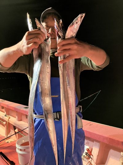 モタレに苦戦で釣果の差が出ました 早夜便タチウオ明日も出船致します ご予約受付中です