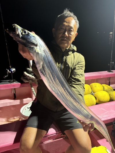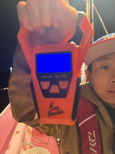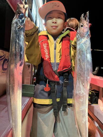 今夜はドラゴンバトル第一号(キッズ、レディースの部)杉山ミナト君1480ポイント 今後の盛り上がりに期待します 明日も早夜便タチウオ出船致します ご予約受付中です