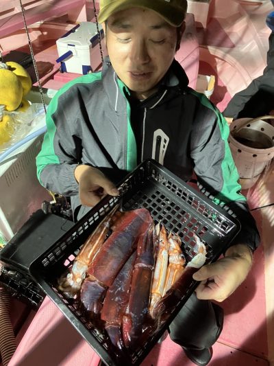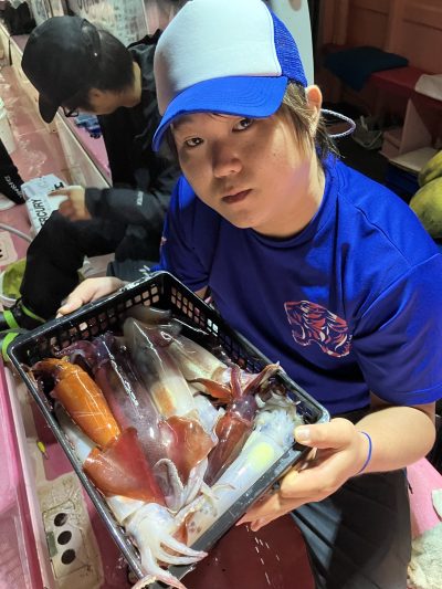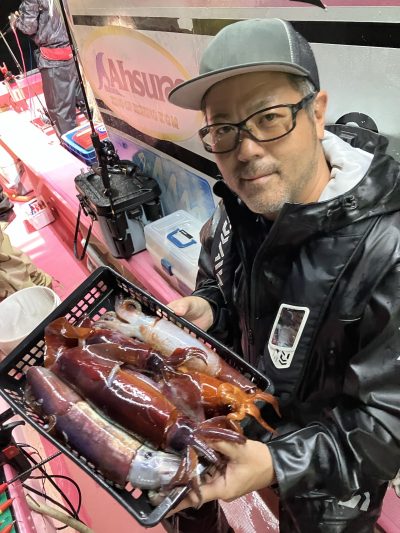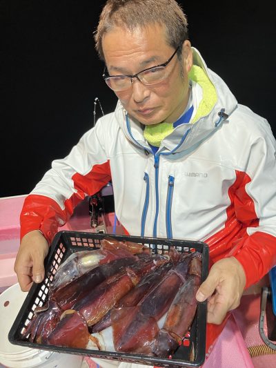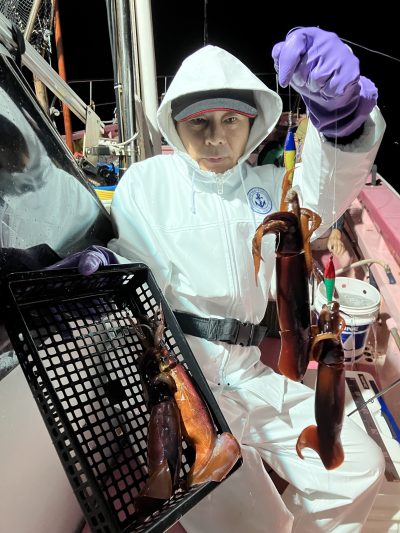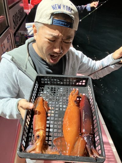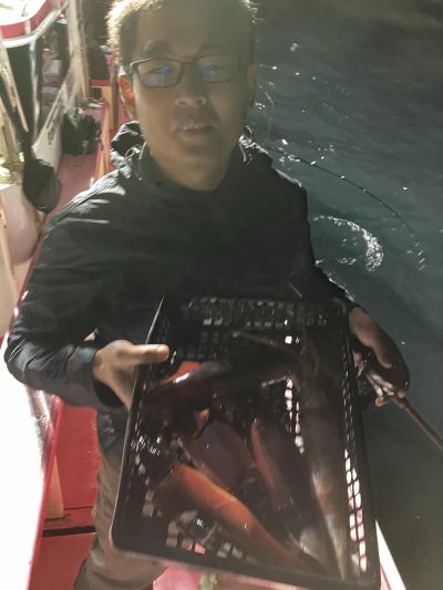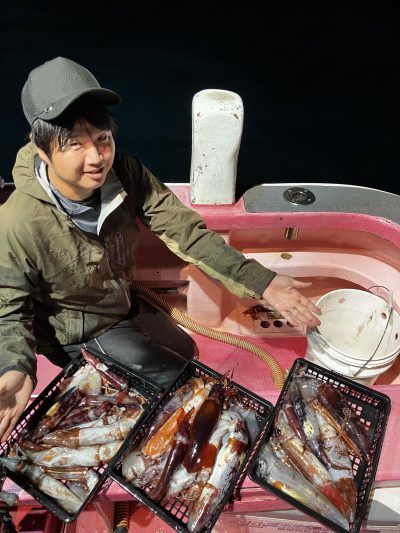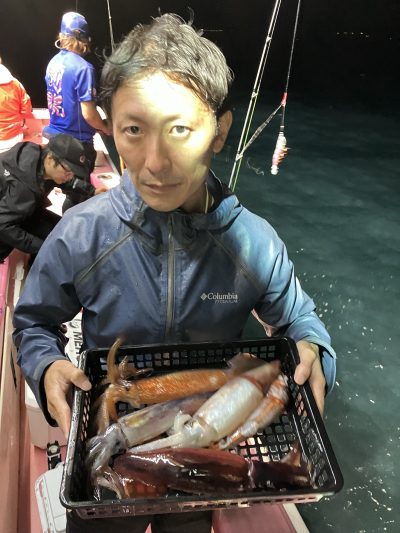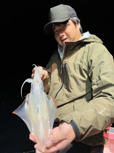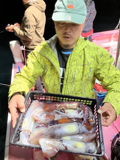 イカは居るような雰囲気はありましたが乗り悪くテクニカルな釣りで釣果の差が出ました 1名様スッテが合わず残念ながら型見れず 今夜は小型ながらも今シーズン初のソデイカの型を見ました ここ2日群れが薄く広く散らばってる印象を受けました また固まるタイミングがあると思うので 先日のような爆ノリに期待します 深夜便ムラサキイカご予約受付中です