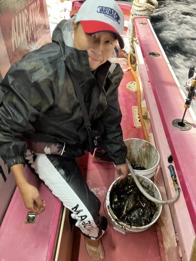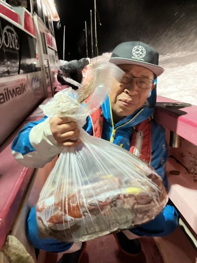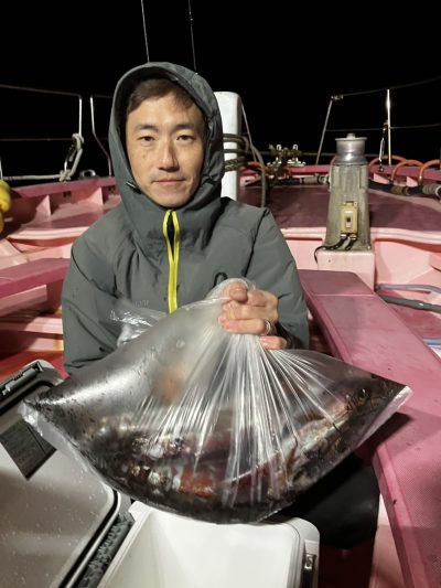 開始からポツリポツリと乗りいつLUSHに入るかとワクワクしていたらやはり明け方入りましたがもう一歩先の爆ノリに入らず それでもムラサキイカらしい連発する豪快な引きを皆さん楽しんでいました 今夜も深夜便ムラサキイカ出船致します ご予約受付中です