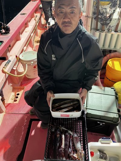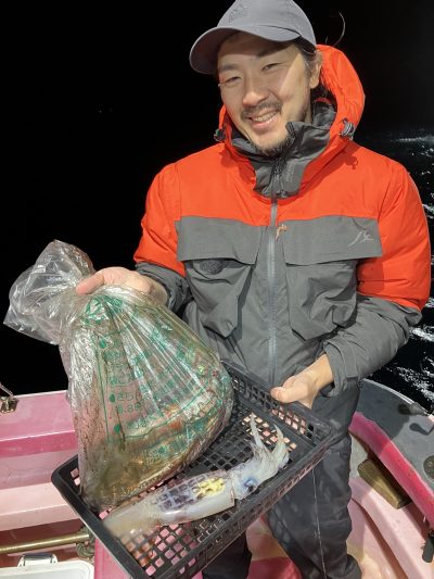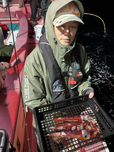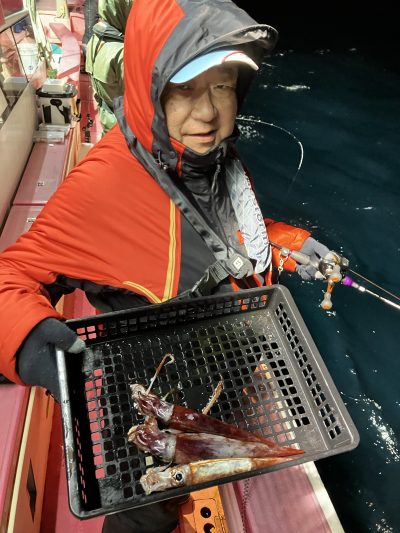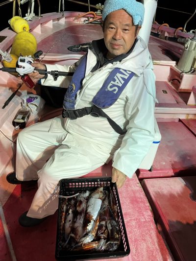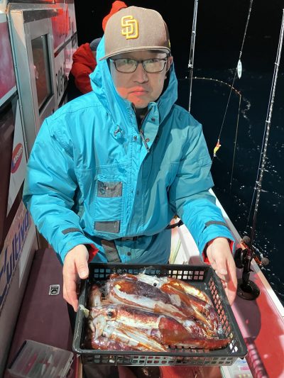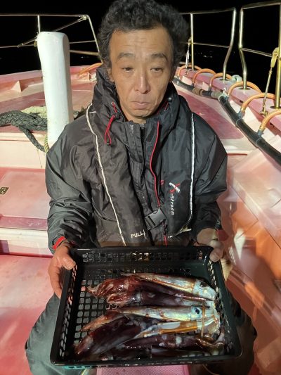 今夜のムラサキイカは水面に結構見えて来てましたがいつものように乗らず 広く探索しましたがスジイカ先行に混じって釣れる程度でした 深夜便ムラサキイカ今後のノリに期待します ご予約受付中です