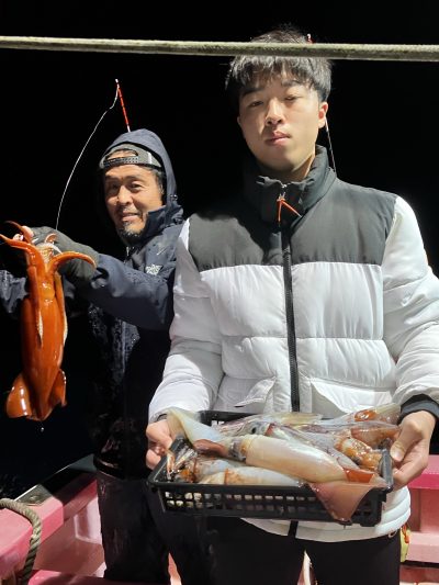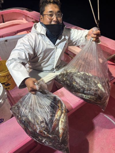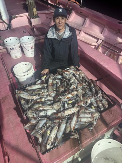 今シーズンは久々にムラサキイカが回遊して来て沢山のお客様に爆ノリやムラサキイカならではの猛烈な引きを楽しんで頂けました。自分の読みでは11月中旬までは何とか楽しめる見込みだったのですが先週の出船あたりからイカの群れがが移動し始めて日に日に沖へ出て行ってる感じを受けました。その後は自分は出船していなかったのですが僚船が出船して型を見れない状況が続いたようです。既にご予約のお客様皆さんメタルスッテやタックルを買って楽しみにされていたお客様本当に申し訳ありませんが、このイカは水温が気にいらないとカツオのようにサッと姿を消してしまうイカです、お客様の予約が入って居るからイカが居なくても出船すると言うのは自分のポリシーに反するので笑ここで今シーズンのムラサキイカは終了とさせて頂きます。今後は夜はタチの様子待ちで昼間は午前便イワシ泳がせで狙うヒラメ、コマセとバチコンで狙う大アジ真鯛、アマダイへ出船して行きたいと思います。ムラサキイカはまた来シーズン状況があればすぐ出船致しますので宜しくお願い致します