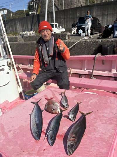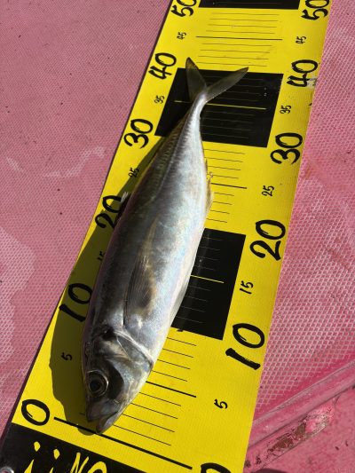 今期1発目の大アジ、真鯛狙いで出船 底潮悪く釣り辛かったです 反応はあるようなので今後に期待します 明日、明後日は午前便ヒラメに出船致します ご予約受付中です