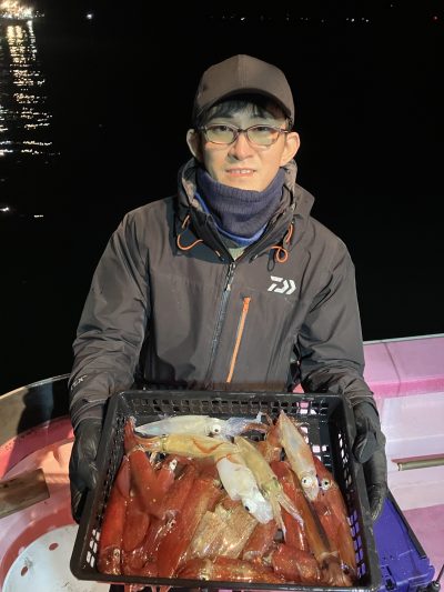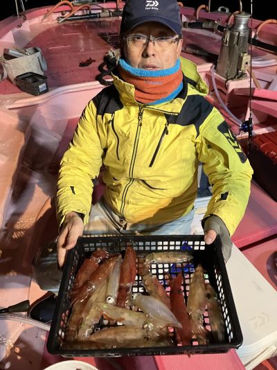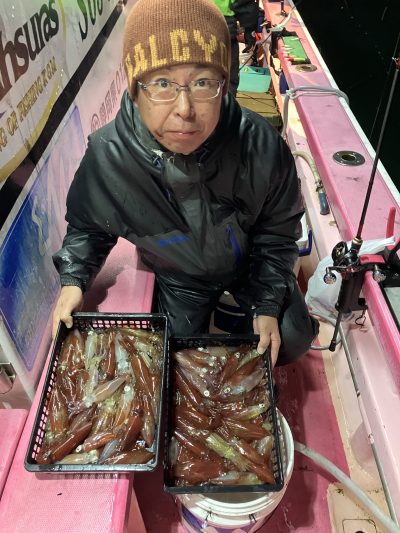 今夜も触りがあるようでしたがノリ悪く釣果の差が出ました そんな中釣果を伸ばしたお客様は棚を細かく探り細かい当たりを拾っていたようです 早夜便マルイカ毎晩出船中 ご予約受付中です