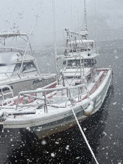 今夜は10年に一度の沼津でも雪が積もった状況の中港まで来て頂いたお客で出船しました