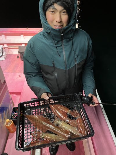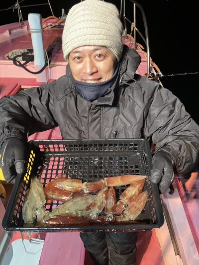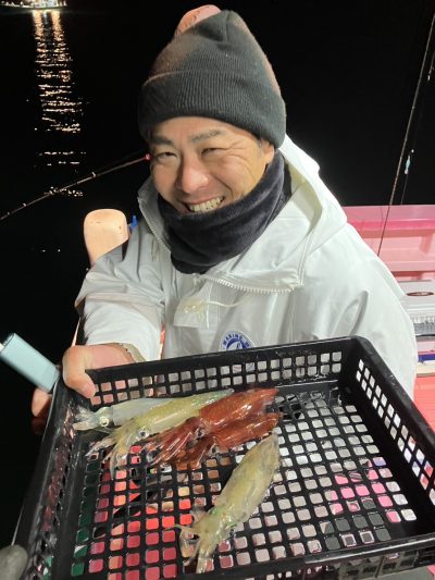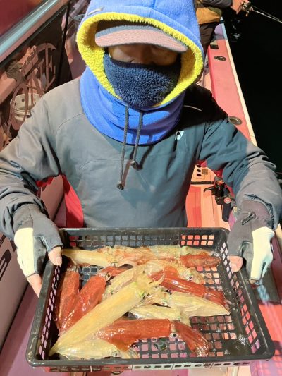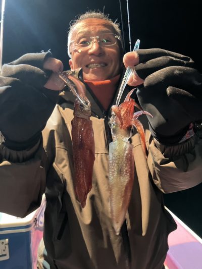 今夜は乗り出しの勢いが無く地味〜に誰かがポツリポツリと乗り始めラスト1時間1発狙いで移動しましたがそこも地味にポツポツと…今夜は珍しくヤリイカが5杯混じりました