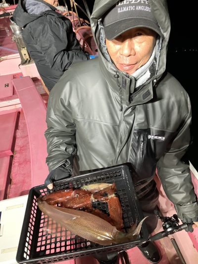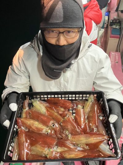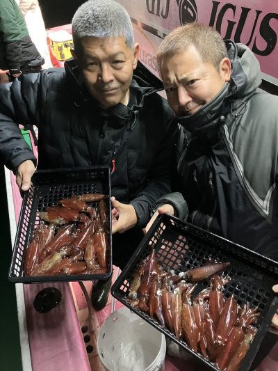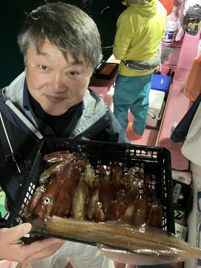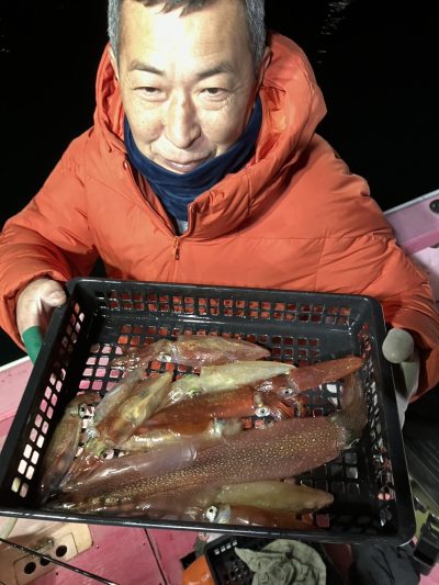 今夜は勢いがあった時間があったので期待をしましたが失速が早かったです その後反応は出ていたのですがノリが悪く数箇所を転々と移動してまわってみましたか釣果は大して伸びず 今後のノリに期待します 今後も引き続き早夜便マルイカ毎晩出船致します ご予約受付中です