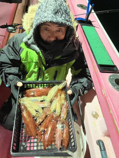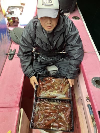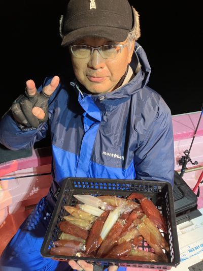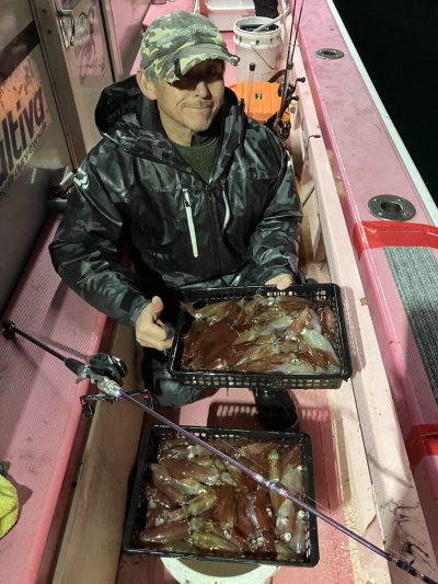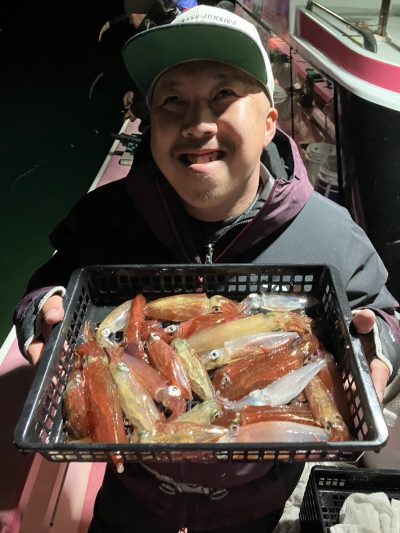 乗り出しのスタートダッシュ後ポツポツと触り続けそのペースをキープしたお客様は釣果を伸ばして行きました 昨晩から雰囲気が良くなって来ているような感じがします 引き続き早夜便マルイカ毎晩出船致します ご予約受付中です