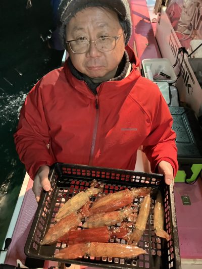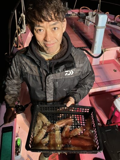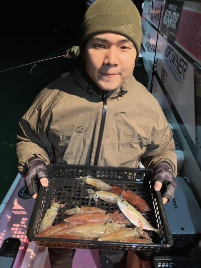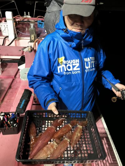 乗り出し前日と同じぐらいの反応も勢いもあった感じでしたが釣果は伸びず 後半は尻上がりにポツポツと触り 前半乗り遅れたお客様も何とか頑張ってくれました 早夜便マルイカ引き続き毎晩出船致します ご予約受付中です