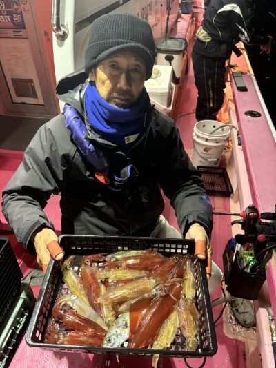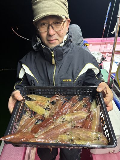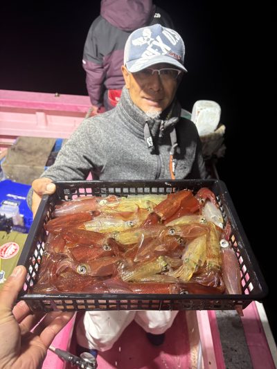 今夜はスタートダッシュのノリが無く 乗り出しからポツリポツリと勢いがありませんでしたが釣果を伸ばしたお客様は終了までポツリポツリとコンスタントに拾い続けました 早夜便マルイカ引き続き毎晩出船致します ご予約受付中です